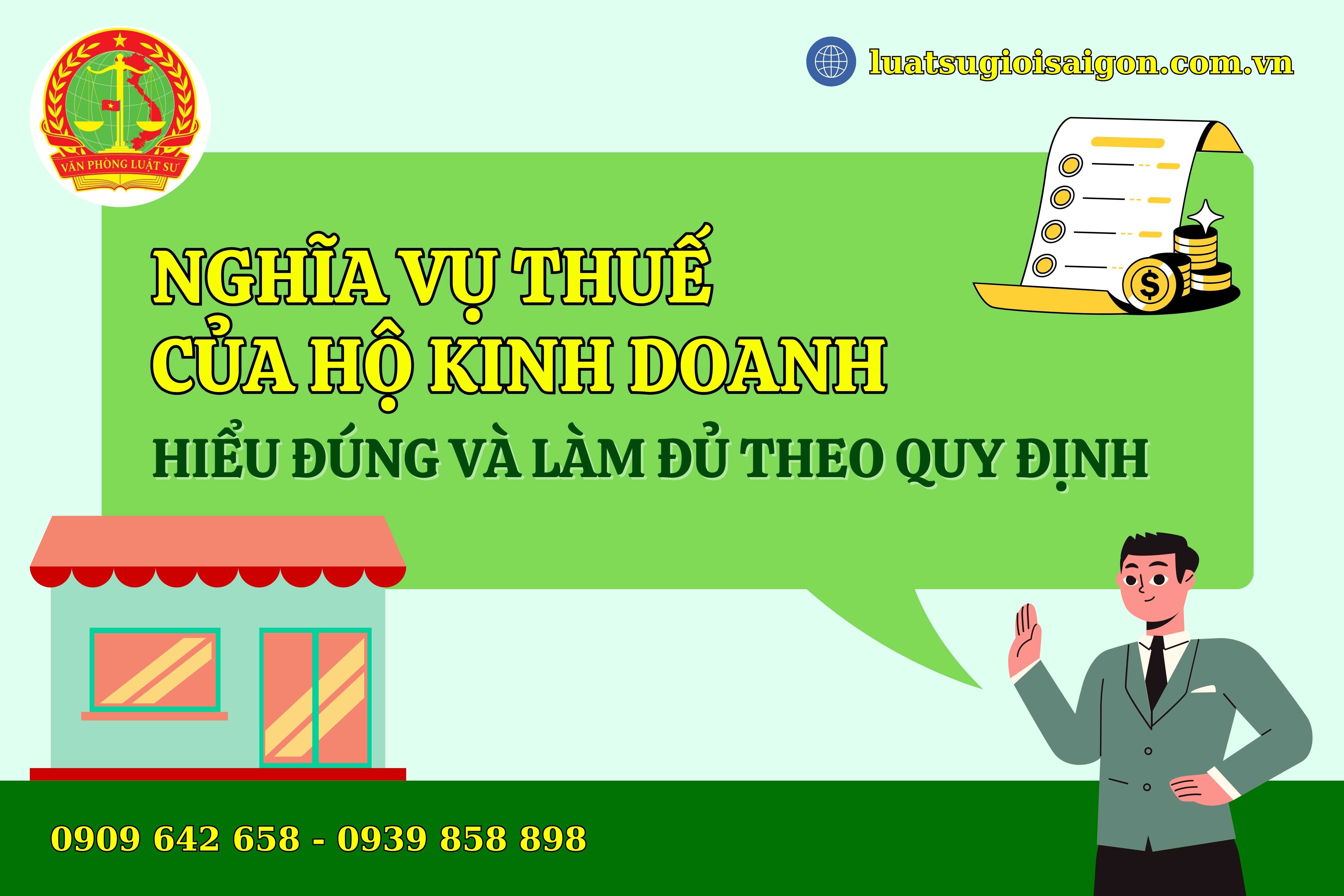 Trên đây là toàn bộ hướng dẫn về nghĩa vụ thuế của hộ kinh doanh kể từ năm 2026. Luật sư giỏi Sài Gòn là đơn vị chuyên cung cấp các dịch vụ tư vấn, hướng dẫn và hỗ trợ thủ tục đăng ký thành lập hộ kinh doanh, doanh nghiệp, nghĩa vụ thuế của hộ kinh doanh và doanh nghiệp. Do đó, quý anh chị và các bạn cần hỗ trợ các vấn đề pháp lý liên quan, hãy liên hệ ngay với chúng tôi theo thông tin bên dưới: